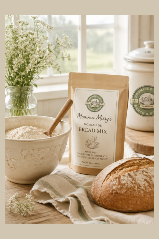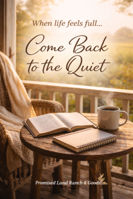 Promised Land Ranch & Goods is rooted in faith, family, and farm life. We share farm-grown goodness, homestead-inspired products, and faith-filled resources created to nourish body, mind, and soul. From quiet devotional moments to simple pantry staple