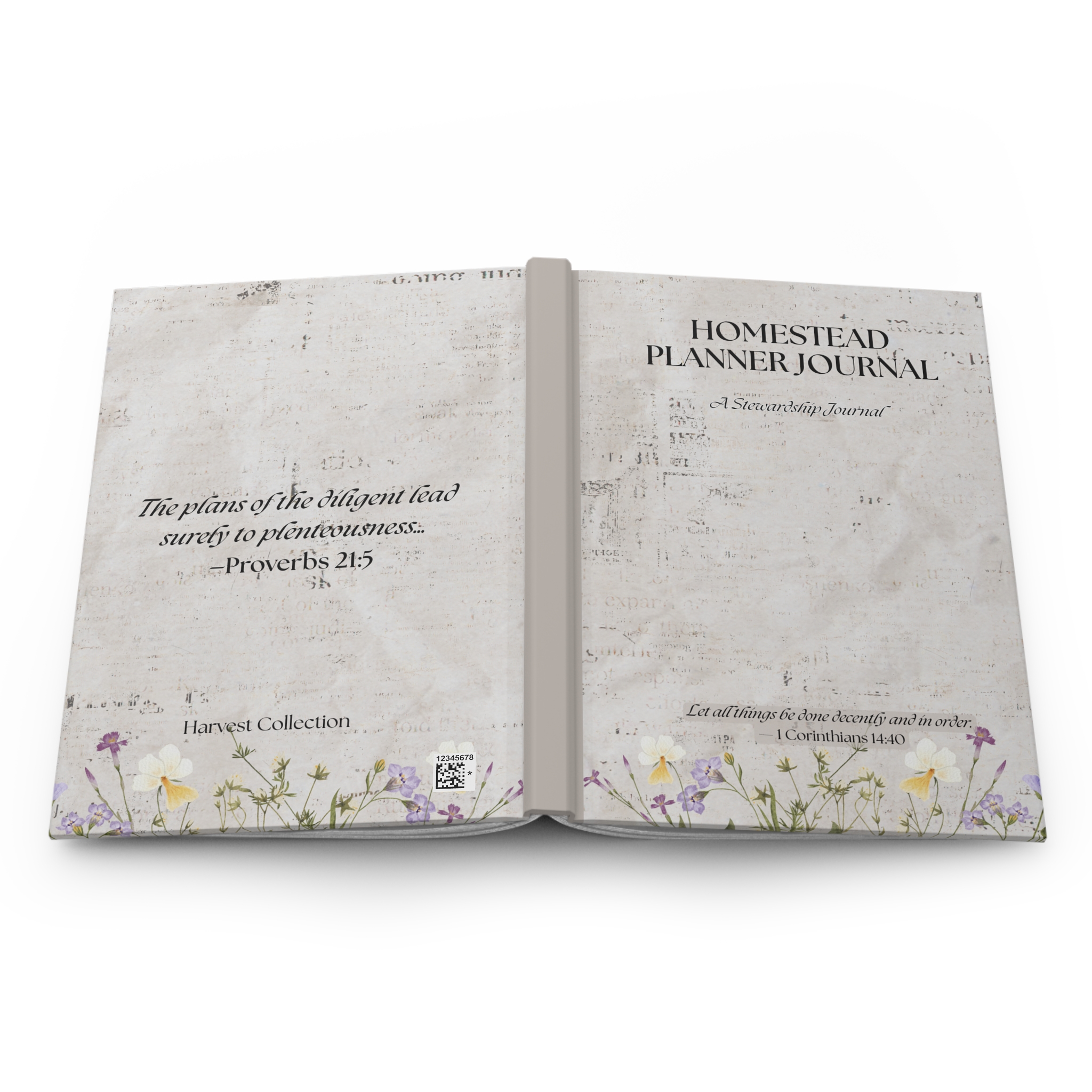 Homestead Planner Journal is a Christian farmhouse-style journal created to help you steward your home, kitchen, garden, and daily responsibilities with clarity and intention. Designed for real-life homesteading rhythms, this journal supports simple organization, seasonal planning, pantry tracking, garden notes, farm records, and faith-centered reflection.