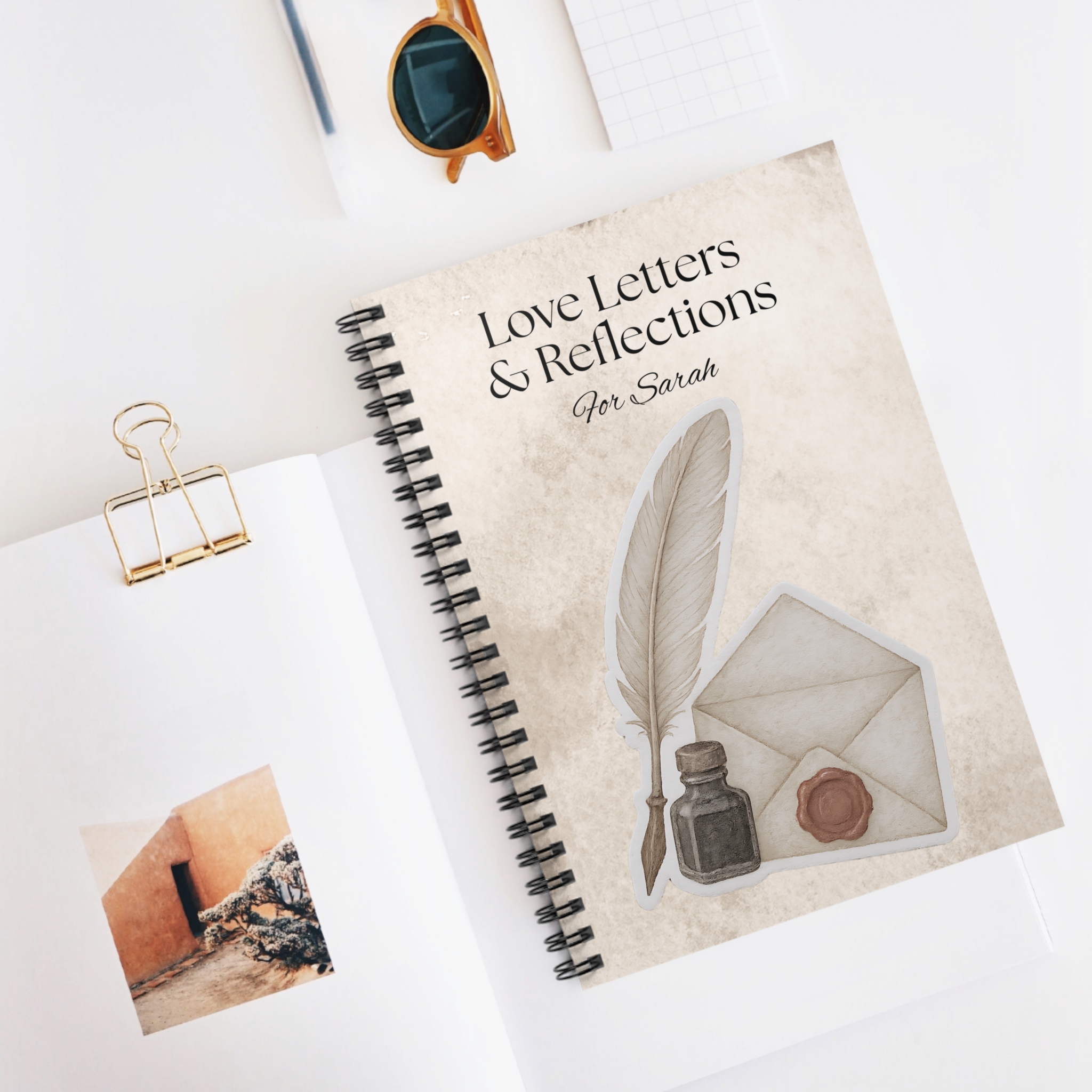Step back into a world of timeless romance with the Personalized Love Letters & Reflections Spiral Notebook. Inspired by vintage parchment and sealed envelopes, this charming journal carries the warmth of handwritten love letters and the elegance of simpler days.