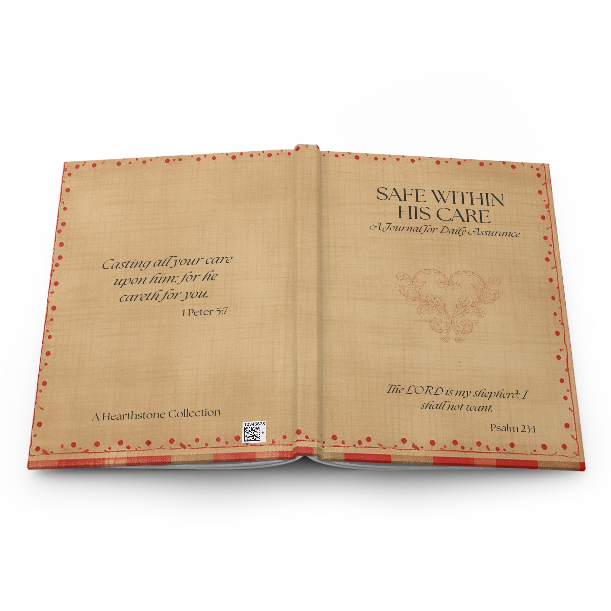 Safe Within His Care is a comforting Christian hardcover journal designed to remind you, day by day, that you are held by God’s faithful hands. Part of the Hearthstone Collection, this journal blends faith, warmth, and everyday practicality into a beautiful space for prayer, reflection, and writing.